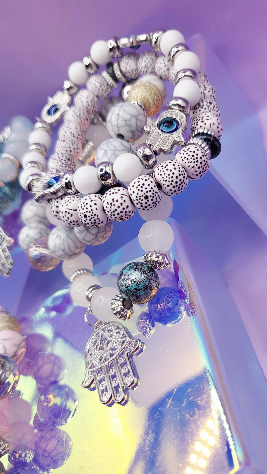 Hamsa Charm Ceramic Beaded Bracelet Set
