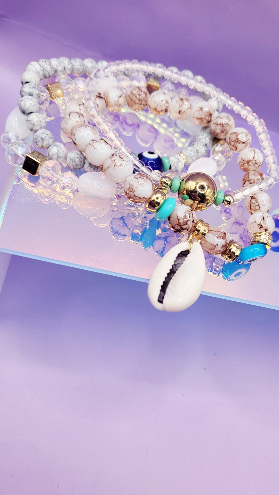 Add a pop of colour and shine to your style with this glass beaded bracelet. Featuring smooth, vibrant glass beads and charming accents, it’s perfect for stacking or wearing solo. Comfortable, eye-catching, and easy to mix and match—this bracelet is a must-have for every accessory lover.