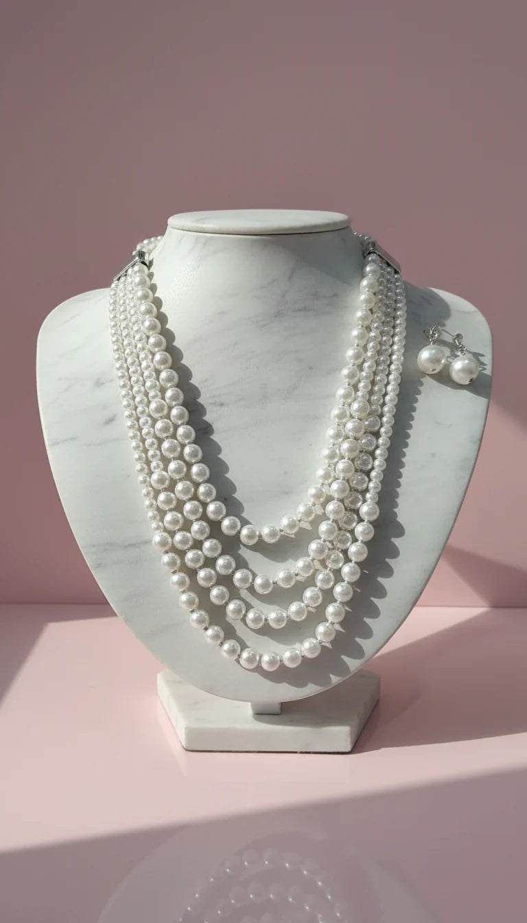 Elevate your look with this gorgeous layered necklace and earrings set ! Featuring multiple layers in one easy-to-wear piece, it adds instant style and a touch of shine to any outfit. Perfect for creating that effortless, stacked look—whether you’re dressing up or keeping it casual. A must-have accessory for every jewellery lover!