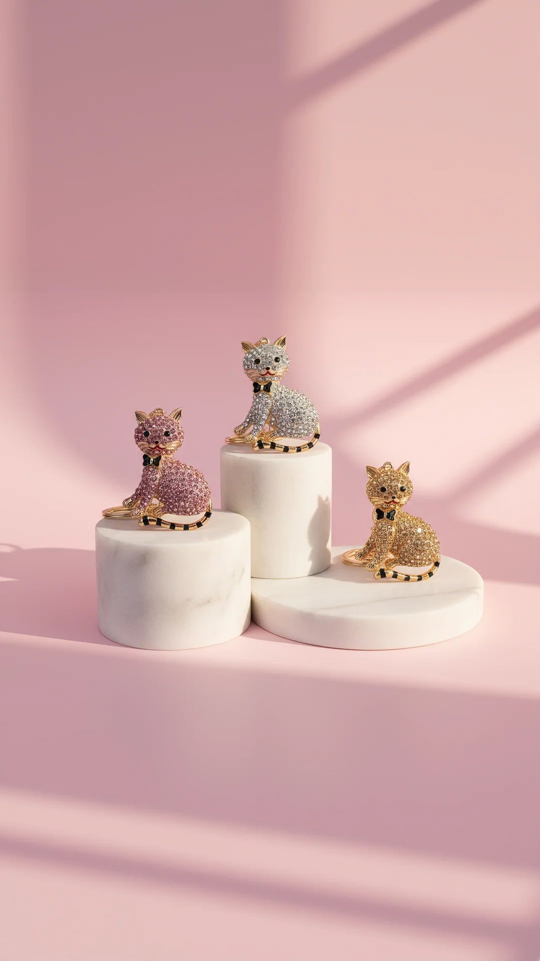 Cat With Bow Tie Crystal Key Ring & Bag Charm