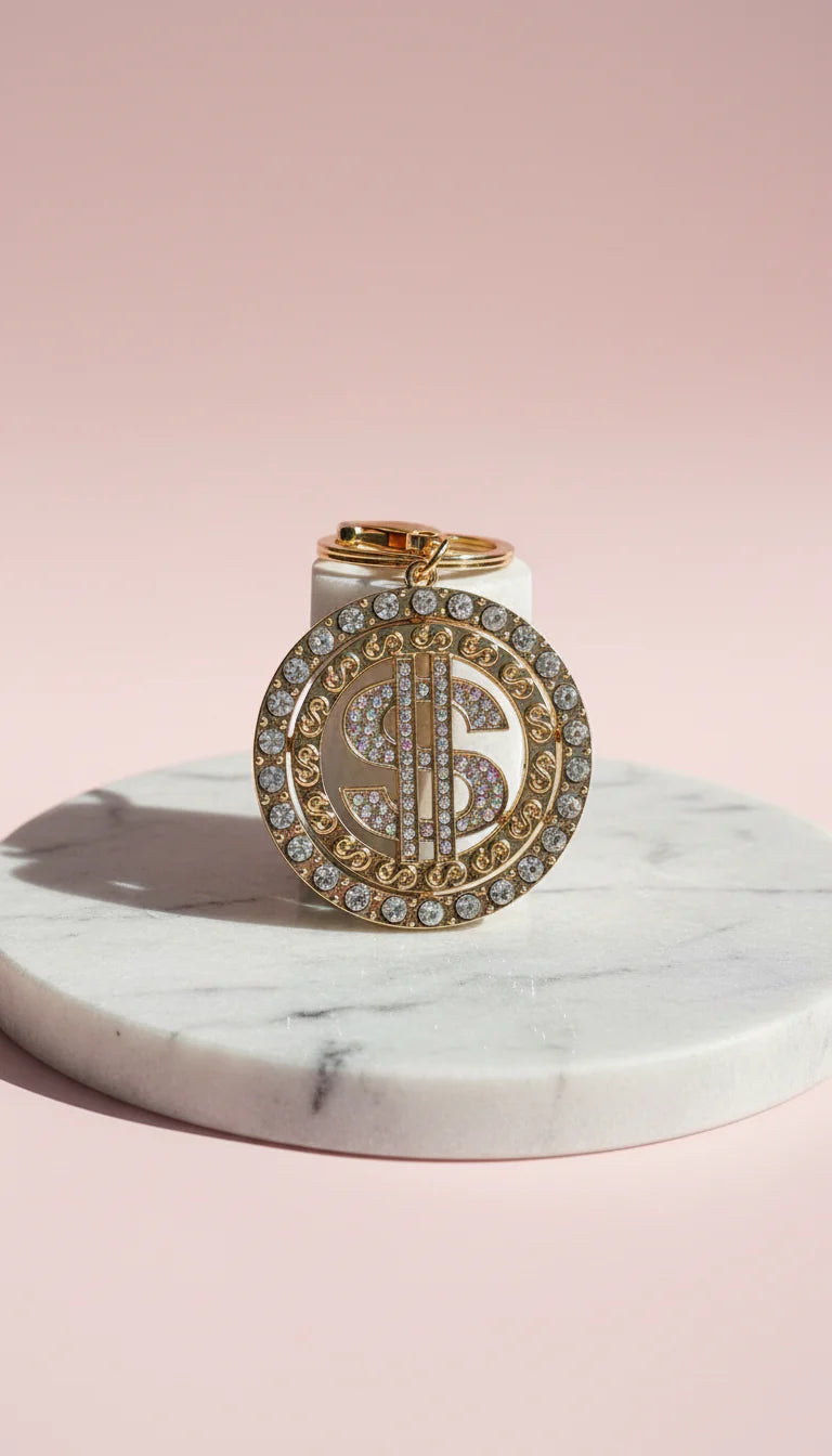 American Dollar Circular Crystal Key Ring & Bag Charm