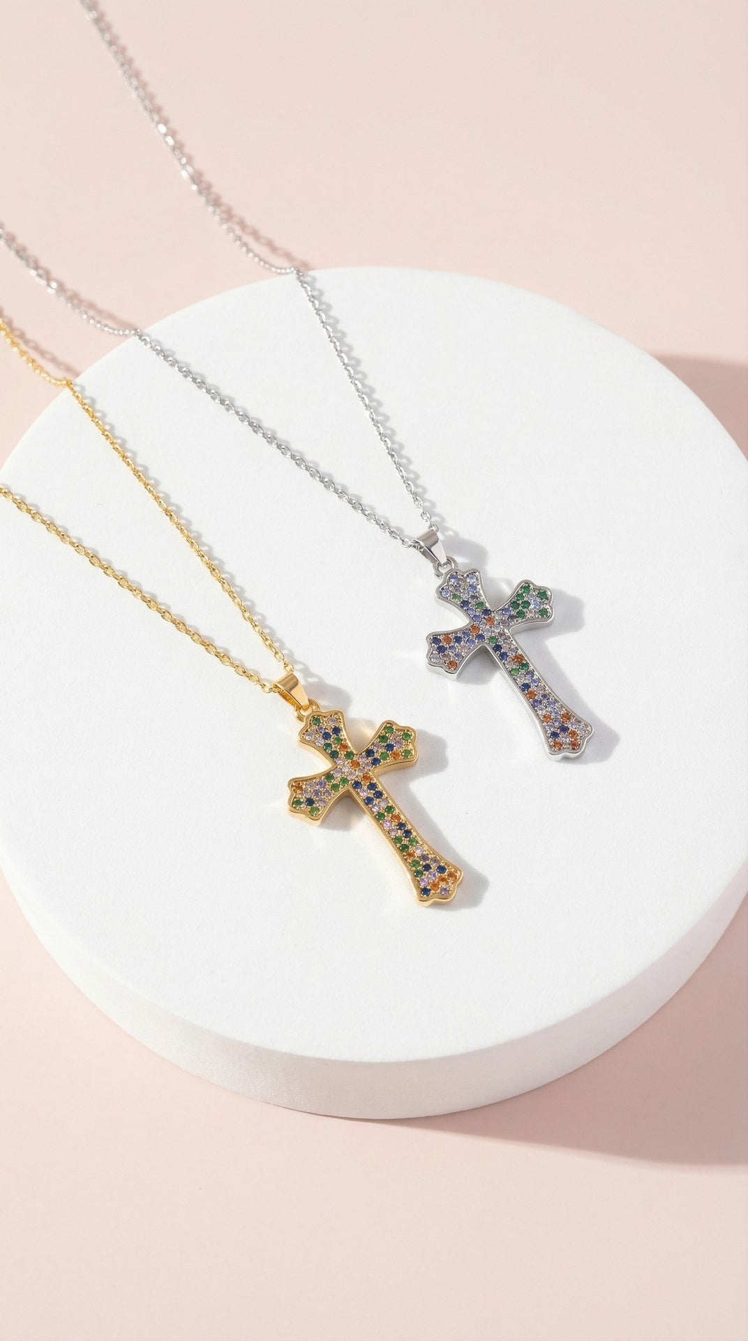 Add a timeless touch to your look with this beautiful cross necklace. Featuring a sleek design and subtle shine, it’s perfect for everyday wear or layering with your favourite pieces. A classic accessory that’s both stylish and meaningful—easy to pair with any outfit and designed to shine on every occasion