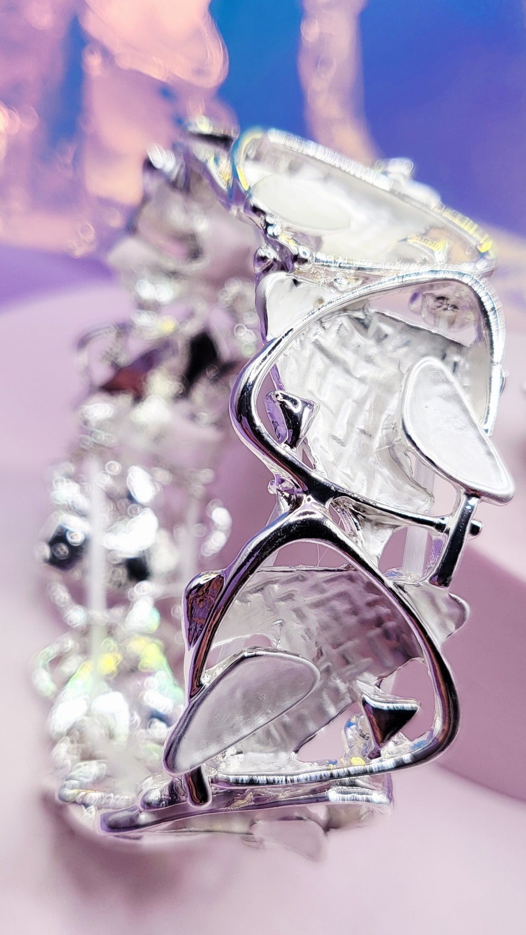Make a statement with this modern abstract bracelet! Featuring bold, artistic shapes and a mix of sleek silver accents, it’s the perfect piece to add a unique twist to any outfit. Lightweight and eye-catching, this bracelet brings a fresh, contemporary vibe—ideal for stacking or wearing solo. Elevate your accessory game with a design that stands out from the crowd!
