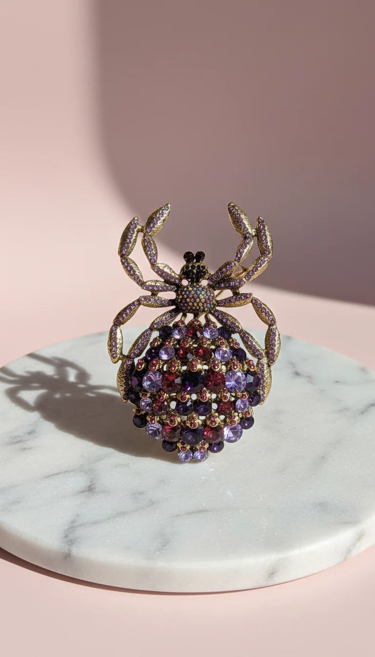Giant Spider Purple Crystal Brooch Pin