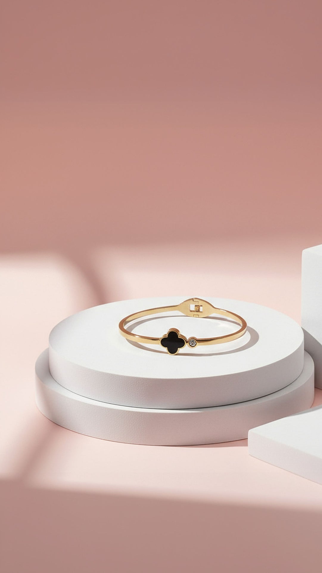 Stainless Steel Clover Round Cut Crystal Stacking Bangle