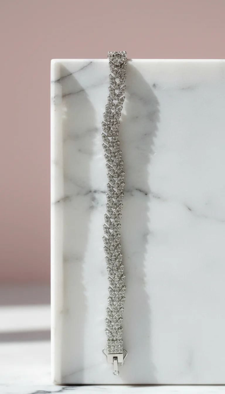Rock a refined look with this sleek steel bracelet chain, featuring delicate crystal accents that shimmer with every movement. Built from premium stainless steel, it resists tarnishing and keeps its luster through daily wear. The smooth curb links glide effortlessly, creating a comfortable fit that feels as good as it looks. Layer it with your favourites or let it shine on its own.