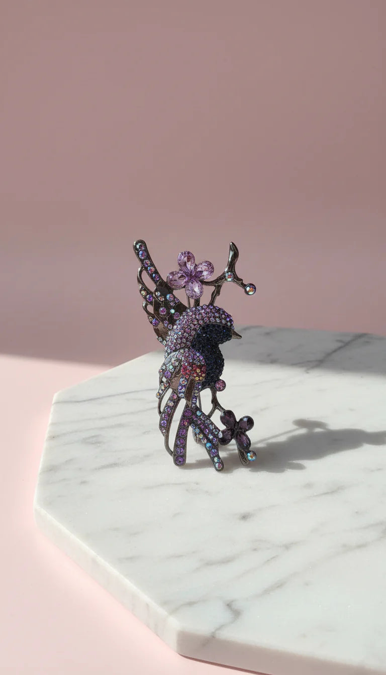 A fun brooch with a playful finish and sparkle. Designed to bring life to any outfit, it can be pinned to jackets, coats, scarves, hats or bags for an easy addition. Lightweight yet well-made, making it a go-to accessory for both casual looks and evening style.